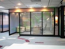 4、根據(jù)軌道形式:固定玻璃隔斷、移動(dòng)玻璃隔斷,折疊玻璃隔斷