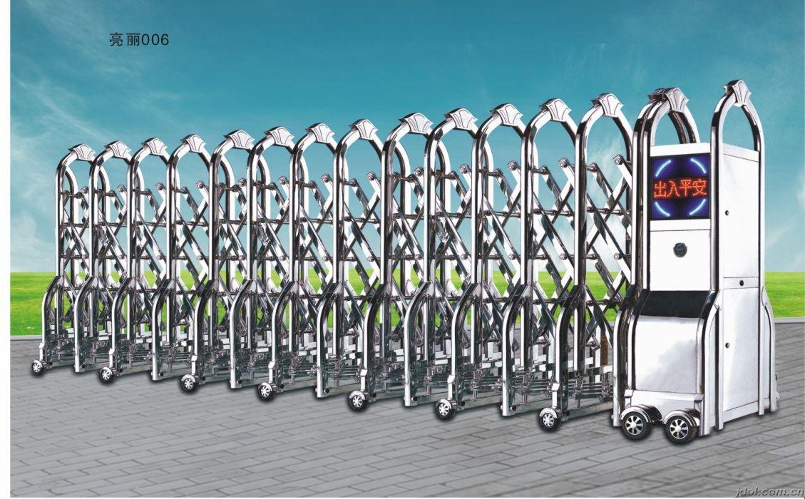 1、伸縮門體:伸縮門體是由門體大框、交叉撐、軸(定軸、滑軸)及門體輪等主要部件組成。門體整體為金屬結(jié)構(gòu),按材質(zhì)又分為不銹鋼門體、鋁合金門體、壓鑄鋁門體。